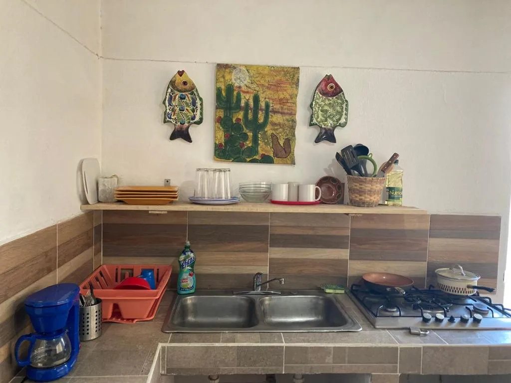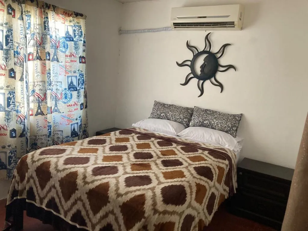 Alojamiento cómodo: Departamento Rustico 2 Recamas Con Garage en La Paz ofrece un apartamento de dos dormitorios con baño privado. La propiedad incluye aire acondicionado, una cocina y un televisor, asegurando una estancia agradable. Instalaciones esenciales: los huéspedes pueden disfrutar de un jardín y un wifi gratis, perfecto para la relajación y la conectividad. El estacionamiento privado gratuito en el lugar está disponible, y el apartamento es amigable con las mascotas. Ubicación conveniente: ubicado a 4,3 millas del aeropuerto internacional de Manuel Márquez de León, el apartamento está a 18 minutos a pie de Conchalito Beach y a 1,2 millas de La Posada Beach y Barco Hundido Beach. Altamente calificado por su conveniente ubicación y limpieza de la habitación.
